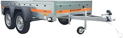 Le prix initial était : 1,948.80€.1,450.00€Le prix actuel est : 1,450.00€.Remorque Alko haute capacité, double essieu ptac 500 kg, 700 lbs) Dimensions utiles : 263 x 125 cm. Taille standard : pneu 155/70 R13. Roue de secours et antivol vendus séparément. Housse de 80 centimètres de haut incluse pour une grande sécurité de transport. Pratique pour déménager, travailler et jardiner