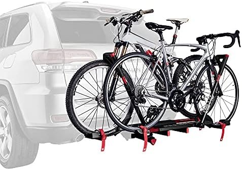 L’insert d’attelage convient aux attelages récepteurs à ouverture carrée de 1 1/4 po (3,2 cm) ou 2 po (5,1 cm) de style américain. Le porte-vélo à chargement facile pour 2 vélos convient aux vélos avec des roues de 26 à 29 po (66 à 73,6 cm) (jusqu’à 40 lb [18 kg] par vélo) et une largeur de roue jusqu’à 3,5 po (8,9 cm). Transporte des vélos avec un empattement de 35 à 48 po (89 à 122 cm) L’insert d’attelage verrouillable, à installation rapide et les porte-vélos verrouillables assurent la sécurité de votre porte-vélos et de vos vélos. Comprend deux clés. S’incline vers l’arrière pour un accès facile au hayon et se replie contre le véhicule lorsqu’il n’est pas utilisé La conception légère en acier et en aluminium pèse environ 14,5 kg Capacité de 18 kg par vélo. Assemblage nécessaire – Outils inclus.