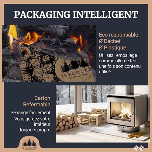 ✅ 5 cartons de 6Kg bois d'allumage sec 1 carton de 160/170 allume-feu en laine et cire de bois 100% naturel