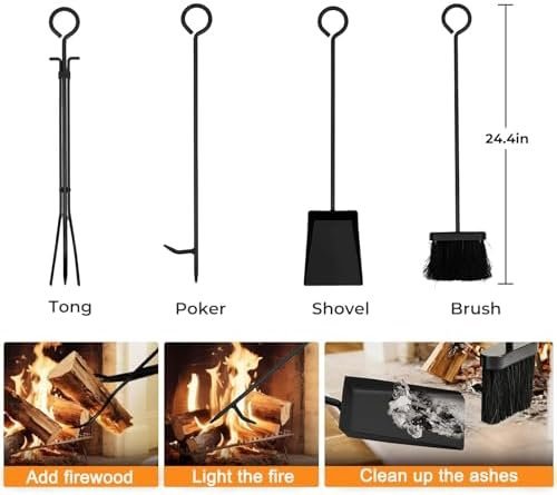 4. Équipé d’un tisonnier, d’une pelle, d’un balai et de pinces à feu for maintenir la cheminée propre