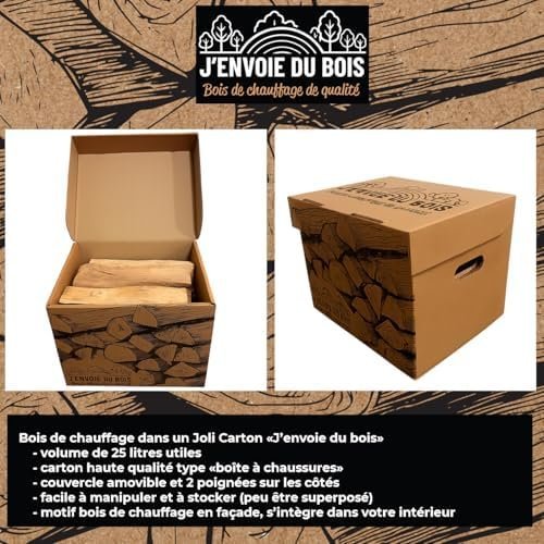 J’ENVOIE DU BOIS – Bois de Chauffage 30cm – Joli Carton de 25 litres – Bûches Extra sèches (étuvées)