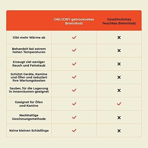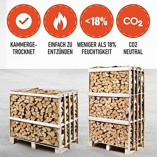 Deux tailles – Grande palette de 1 RM; 1.5 SRM et petite palette de 1,8 RM; 2.7SRMPERFEKTE ONLYDRY BOIS – Le bois de chauffage a un diamètre de 6 à 15 cm et une longueur de 23 à 26 cm. Emballage durable – Les palettes sont également fabriquées en bois séché et peut également être brûlé devenir