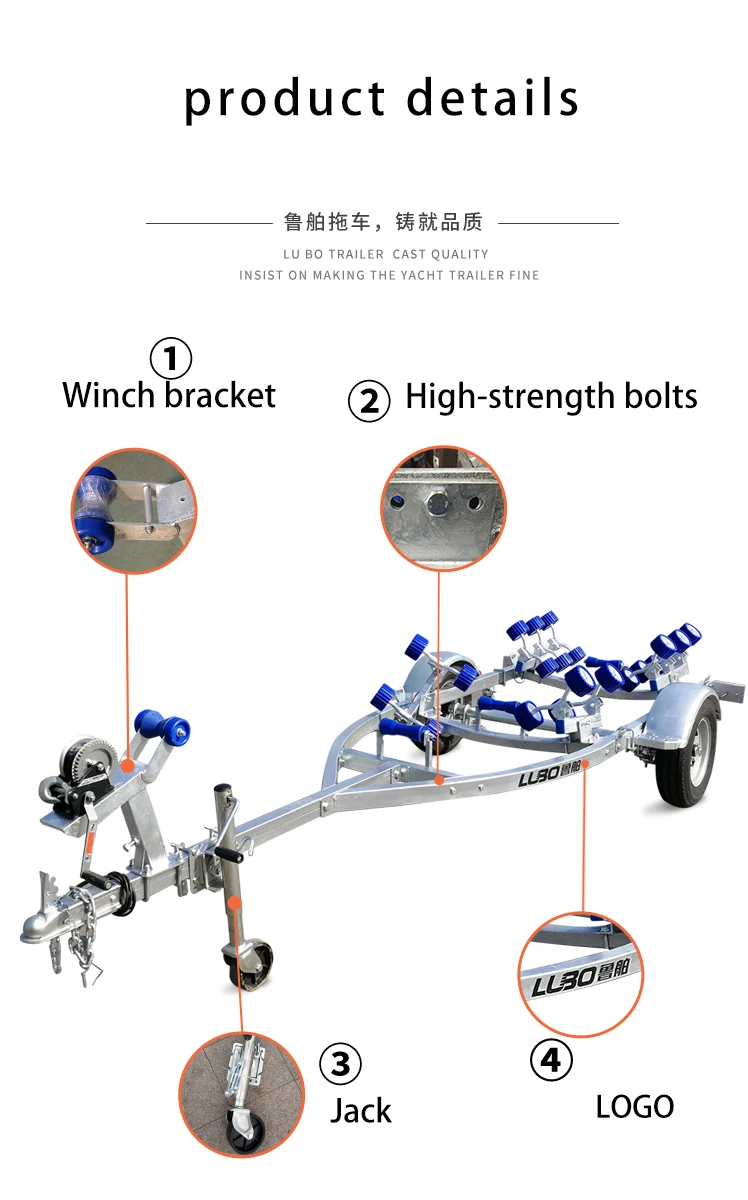 Remorque Cie., Ltd de Zhucheng Luboa été créée en 2016, couvrant une superficie de 10040 mètres carrés, la société s’engage dans la production, la R&D et la vente de remorques pour bateaux, de remorques pour jet ski, de remorques pour motos et de remorques à lit plat. Nous avons exporté plus de 70 pays comme les États-Unis et l’Australie., Canada, Mexique, Japon, Corée du Sud, Vietnam, Philippines, Malaisie, Thaïlande, Inde, etc.