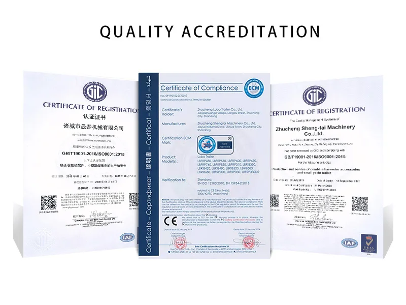 Remorque Cie., Ltd de Zhucheng Luboa été créée en 2016, couvrant une superficie de 10040 mètres carrés, la société s’engage dans la production, la R&D et la vente de remorques pour bateaux, de remorques pour jet ski, de remorques pour motos et de remorques à lit plat. Nous avons exporté plus de 70 pays comme les États-Unis et l’Australie., Canada, Mexique, Japon, Corée du Sud, Vietnam, Philippines, Malaisie, Thaïlande, Inde, etc.