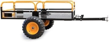 Idéale pour transporter efficacement des matériaux variés comme le bois, le sable, les feuilles mortes et les déchets de tonte. Sa capacité de charge élevée de 450 kg et sa construction robuste en acier en font un outil fiable pour les travaux exigeants de jardinage ou de manutention extérieure. [Parois amovibles] – Les parois latérales détachables entourant la surface de chargement facilitent le dépôt et le retrait des matériaux volumineux ou lourds. Cette fonctionnalité améliore considérablement la praticité de la remorque basculante, rendant vos tâches de transport plus simples et rapides, même avec des charges importantes [Dimensions généreuses] – Une surface de chargement spacieuse de 210 x 120 x 70 cm garantit une capacité idéale pour divers travaux. Qu’il s’agisse de transporter du paillis, des pierres ou de grandes quantités de sable, ce chariot offre l’espace nécessaire pour répondre aux besoins des jardiniers et des professionnels [Maniabilité accrue] – Dotée de deux pneus solides, cette remorque offre une mobilité exceptionnelle sur des terrains variés, y compris les surfaces irrégulières. Compatible avec les tondeuses autoportées, elle suit aisément leurs mouvements, offrant un confort optimal et un transport sécurisé des charges lourdes et encombrantes [Fabrication durable] – Construite en acier résistant, cette remorque est conçue pour supporter une utilisation intensive tout en maintenant une performance optimale. Sa solidité et sa capacité de charge élevée garantissent une durabilité à long terme, idéale pour les travaux extérieurs les plus exigeants et variés