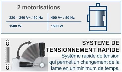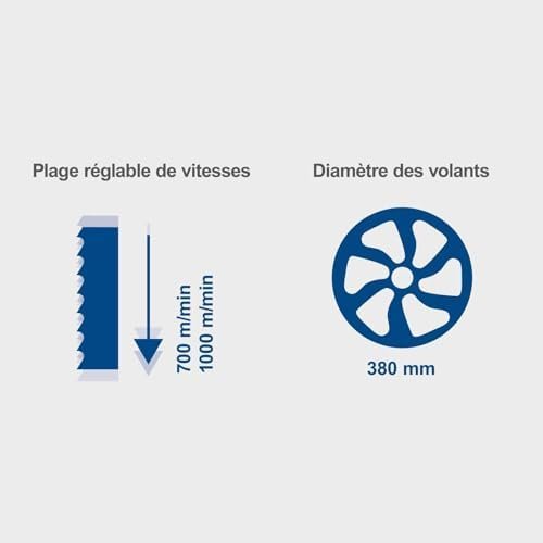 -Deux vitesses 700 et 1000 m/min pour les matériaux les plus divers -Table stable en fonte grise, inclinable de -17 à +45° -Guidage de précision trempé à 3 galets au-dessus et au-dessous de la table -Guidage supérieur du ruban de scie réglable en hauteur par crémaillère -Roues à ruban équilibrées et rectifiées avec bandage en caoutchouc -Levier de serrage rapide pour le ruban de scie -Hauteur de passage 250mm