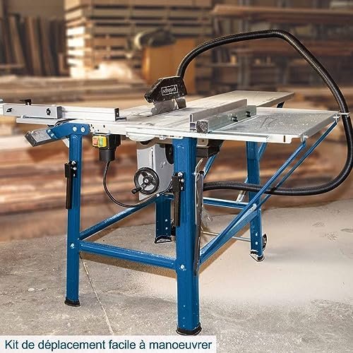 Cette scie équipée d’une lame de 315 mm inclinable, livrée avec un chariot, un élargissement de table, une rallonge de table, 2 lames de scie au carbure offre l’ensemble Le plus complet de sa catégorie. C’est un outil idéal pour le particulier et le professionnel. Chariot standard avec tablette livré de série. Moteur à induction puissant de 2200 W. 2 lames carbure durables – Ø 315 mm. Bâti robuste thermo-laqué, table galvanisée. Livrée avec une rallonge de table et un élargissement de table. Protecteur de lame avec embout destiné au Dépoussiérage à l’aide d’un aspirateur. Volant de réglage à volonté De la hauteur et de inclinaison de la lame. 2 poignées et 2 roues facilitent le déplacement de la scie sur site. Le guide d’angle et le guide parallèle sont très robustes, le guide parallèle est positionnable de 2 façons en fonction de la position de la lame à la verticale ou inclinée. Diamètre de la lame de scie circulaire 315 mm. Forme de dent de la lame de scie circulaire wechselzahn. Longueur de la table 800 mm. Largeur de dent 3.
