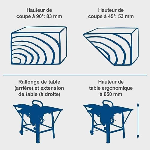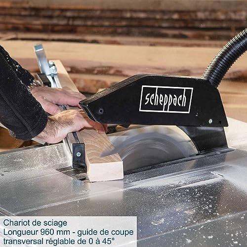 Scheppach Scie circulaire sur table TS310 | 230V | 2200W | Lame Ø315mm | Hauteur de coupe 83mm | Avec élargissement de table, 2ème lame, rail de guidage & chariot coulissant | inclinable jusqu’à 45°
