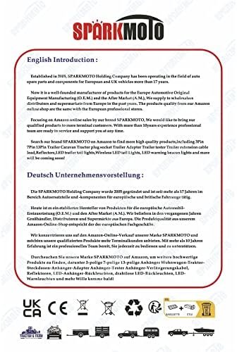 en tant que marque directe d’usine, nous fournissons une gamme complète de prise de remorque à 3 broches pour tracteur, prise de remorque à 7 broches 13 broches, prise de remorque pour caravane, adaptateur de remorque testeur de remorque, câble d’extension de remorque, feux de remorque, feux de gyrophare à LED, recherchez notre marque SPARKMOTO pour plus de détails. 【De vrais trucs】 Ces prises de remorque à 13 broches utilisent un boîtier en nylon durable à haute résistance, difficile à casser ou à endommager dans de mauvaises conditions routières et météorologiques, des broches de borne à vis en laiton nickelé spécial et une conception étanche fourniront une meilleure connexion sécurisée avec vos véhicules.Le couvercle de prise vert 13 broches protégera mieux la prise lorsqu’elle n’est pas utilisée. 【Norme européenne】 La société holding de la marque SPARKMOTO opère dans le domaine des pièces de rechange automobiles, de la prise de remorque pour les véhicules européens et britanniques depuis plus de 17 ans. Tous nos produits ont passé l’approbation CE, RoHS, sont conformes à la norme ISO 11446 (DIN 72570) Standard 【Applications Tension】Ces prises de remorque sont utilisées pour les connexions électriques entre un véhicule et une remorque de remorquage ou une caravane avec système électrique 12V, transférant le signal électronique des lumières de la voiture/véhicule à la remorque.Convient aux remorques, caravanes, voitures, barre de remorquage, vélo Transporteurs, camion, tracteur, camionnettes, camping-car. 【Service client】 en tant que marque fiable, SPARKMOTO s’engage à fournir aux clients des produits parfaits et une expérience d’achat agréable, au cas où pour une raison quelconque vous n’êtes pas satisfait de nous, n’hésitez pas à nous contacter et nous vous répondrons dès que possible avec une bonne solutions. Vôtre satisfaction est nôtre priorité absolue.