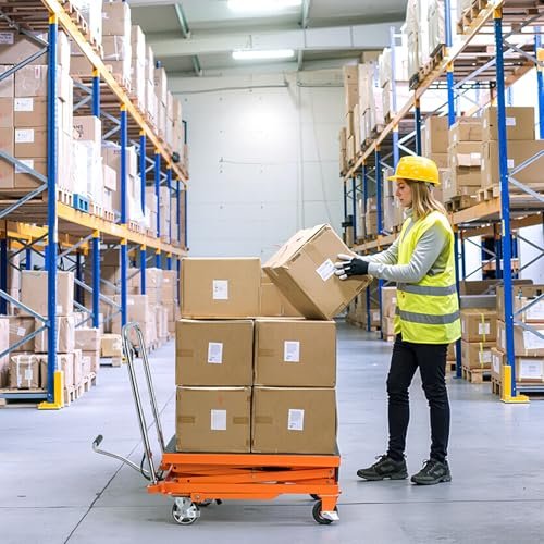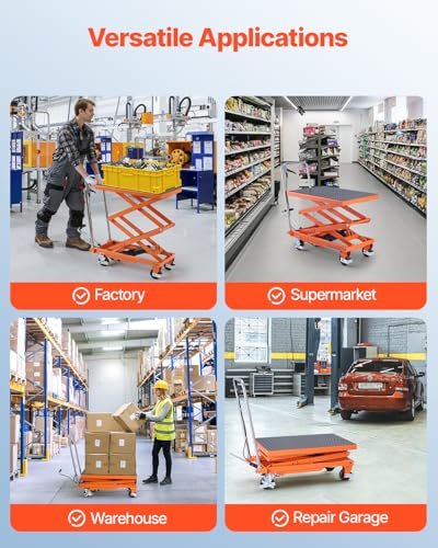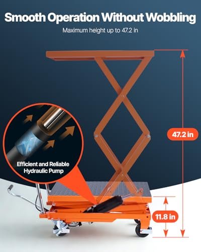 VEVOR Table Élévatrice Hydraulique, Capacité 226,8 kg, Chariot à Table Élévatrice Double Ciseaux, Hauteur de Levage 300-1200 mm, 4 Roues et Patin Antidérapant, pour Manutention, Transport de Matériaux