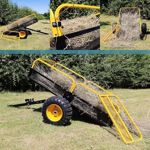 Idéale pour transporter efficacement des matériaux variés comme le bois, le sable, les feuilles mortes et les déchets de tonte. Sa capacité de charge élevée de 450 kg et sa construction robuste en acier en font un outil fiable pour les travaux exigeants de jardinage ou de manutention extérieure. [Parois amovibles] – Les parois latérales détachables entourant la surface de chargement facilitent le dépôt et le retrait des matériaux volumineux ou lourds. Cette fonctionnalité améliore considérablement la praticité de la remorque basculante, rendant vos tâches de transport plus simples et rapides, même avec des charges importantes [Dimensions généreuses] – Une surface de chargement spacieuse de 210 x 120 x 70 cm garantit une capacité idéale pour divers travaux. Qu’il s’agisse de transporter du paillis, des pierres ou de grandes quantités de sable, ce chariot offre l’espace nécessaire pour répondre aux besoins des jardiniers et des professionnels [Maniabilité accrue] – Dotée de deux pneus solides, cette remorque offre une mobilité exceptionnelle sur des terrains variés, y compris les surfaces irrégulières. Compatible avec les tondeuses autoportées, elle suit aisément leurs mouvements, offrant un confort optimal et un transport sécurisé des charges lourdes et encombrantes [Fabrication durable] – Construite en acier résistant, cette remorque est conçue pour supporter une utilisation intensive tout en maintenant une performance optimale. Sa solidité et sa capacité de charge élevée garantissent une durabilité à long terme, idéale pour les travaux extérieurs les plus exigeants et variés